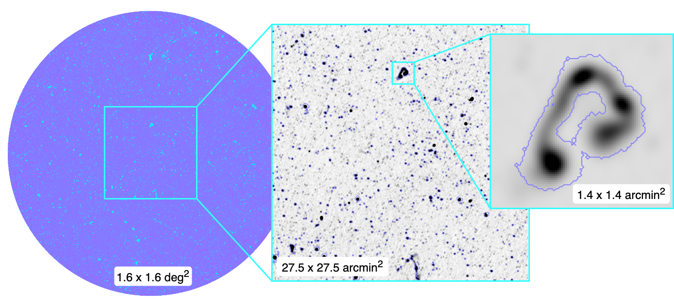 ContinUNet is a source finding package for radio continuum survey data powered by U-Net segmentation algorithm. Radio continuum image example from the MIGHTEE survey Early Science data [2] COSMOS field, with overplotted segmentation boundaries of sources detected by ContinUNet.